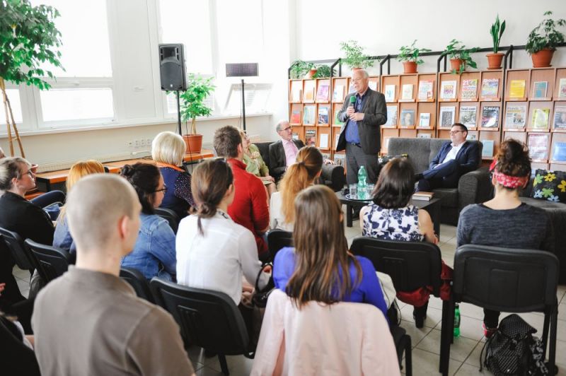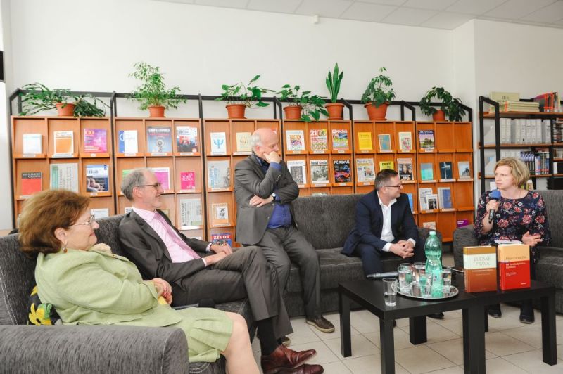 Súčasťou návštevy veľvyslanca pána Bleickera bolo stretnutie so študentmi a pedagógmi katedry germanistiky v Univerzitnej knižnici a prezentácia knihy Ľudské práva, ktorej editorom nemeckého originálu je Prof. Lohman a na preklade do slovenčiny sa podieľala PaedDr. Monika Hornáček Banášová, PhD. Editor slovenského vydania knihy, doc. Muránsky, vysoko vyzdvihol prínos a iniciatívu katedry germanistiky pri realizácii prekladu prezentovanej publikácie z nemčiny, ktorá je jedinečná svojho druhu v slovenskom a českom vedeckom prostredí.