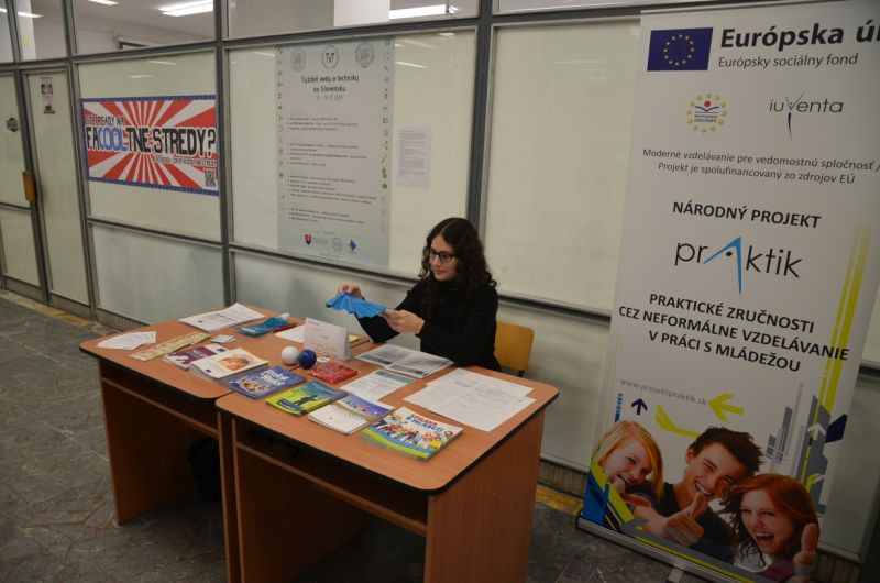 * prezentácia optických ilúzií / plagáty + projekcia * prezentácia organizácií : AIESEC, ESN, IUVENTA, PSYCH KLUB, SAŠAP * predajná výstava odborných publikácií z vydavateľstiev MATHÉ, BOBOOKS a Vydavateľstvo F * Psychologické hry