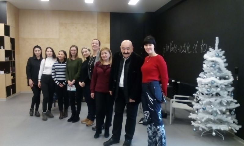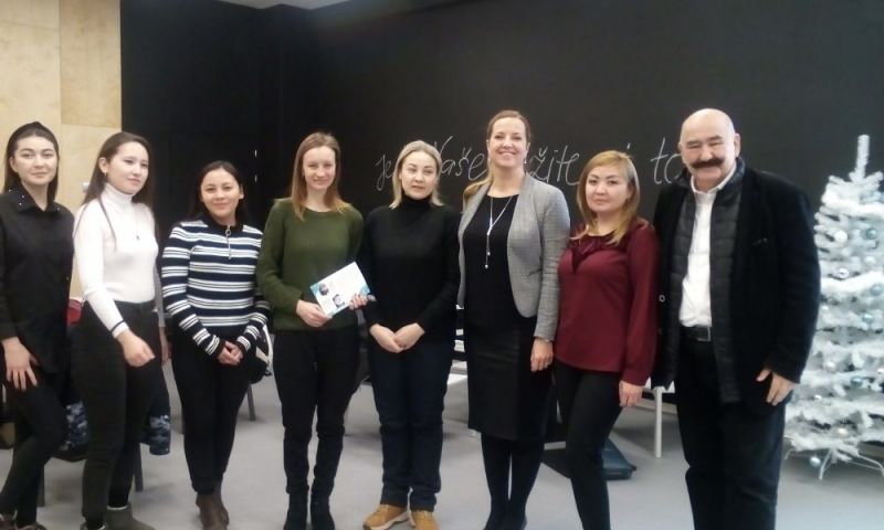 Pred vianočnými sviatkami navštívili našu fakultu študentky magisterského štúdia rusistiky, anglistiky, histórie a filozofie z Univerzít v Kazachstane, ktoré sú na Slovensku na kratšom študijnom pobyte. Spolu s riaditeľom Euroázijskej akadémie doc. Benčičom sa stretli s dekankou FF UCM a prezreli si priestory univerzity. Zúčastnili sa prednášky s Dr. Cíbikovou z katedry anglistiky a amerikanistiky. Rozprávali sa tiež o ponuke študijných pobytov, ako i o možnostiach doktorandského štúdia na FF UCM. Prajeme im šťastný návrat domov a tešíme sa na spoluprácu v roku 2019.