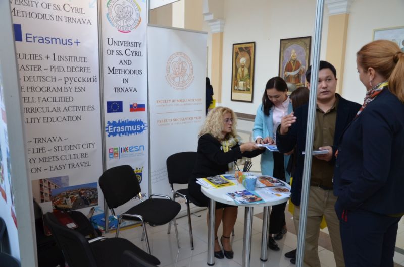 Zástupcovia UCM v Trnave, doc. Mgr. Katarína Slobodová Nováková, PhD., PhDr. Mária Igazová, PhD. a Mgr. Vladimír Novák, ktorí realizovali prezentáciu univerzity na veľtrhu, sa postarali aj o podpísanie bilaterálnej dohody, zmluvy o spolupráci medzi Univerzitou sv. Cyrila a Metoda v Trnave a Al Farabi Kazašskou národnou univerzitou v Alma-Ate. Tým sa otvárajú možnosti nielen pre študentov z Kazachstanu, ale aj pre študentov UCM, ktorí tak môžu absolvovať študijný pobyt v Kazachstane vďaka štipendijnej podpore ERASMUS+. Štúdium je ideálne pre študentov, ktorí chcú zdokonaliť svoje vedomosti vo vybraných programoch v ruskom ale aj v anglickom jazyku.
