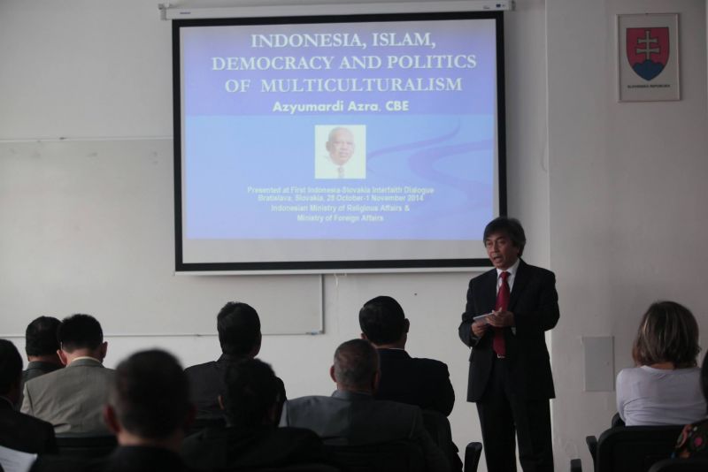 Po privítaní „chlebom a soľou“ a príhovoroch nasledovala ukážka tradičného tanca a blok prednášok na tému „Diverzita a pluralita: Indonézska skúsenosť“, v rámci ktorej členovia delegácie prezentovali aktuálnu kultúrno – nábožensko – spoločenskú situáciu v Indonézii. Zároveň priblížili projekty a aktivity, ktoré napomáhajú k udržiavaniu tolerancie, harmónie a jednotnosti v tak veľkej a rozmanitej krajine.