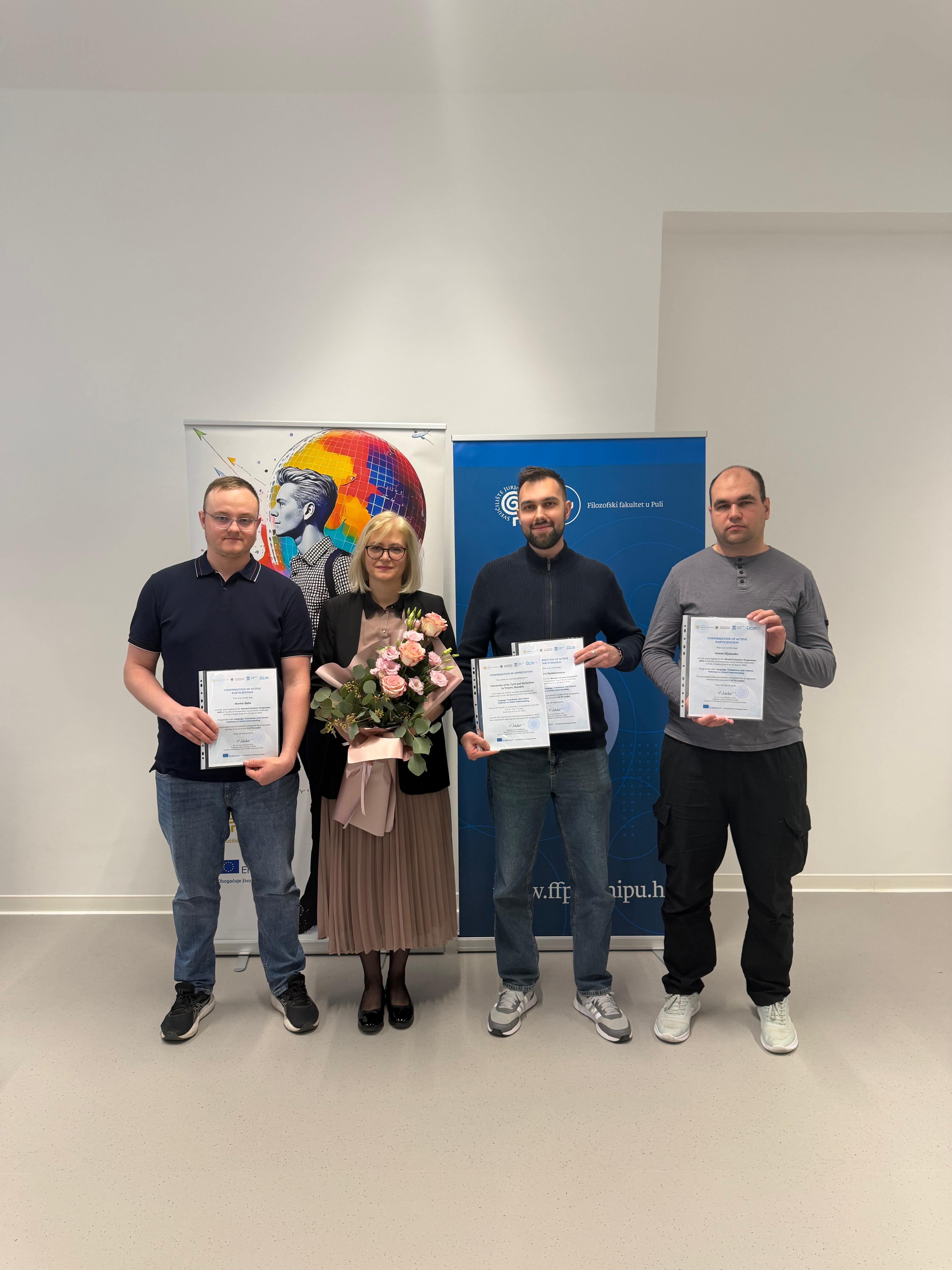 Fakultu i univerzitu reprezentovali doktorandi Katedry rusistiky Mgr. Andrei Shakhvorostov a Mgr. Artem Klymenko, ako aj poslucháč magisterského stupňa študijného programu Ruský jazyk a kultúra v odbornej komunikácii Bc. Martin Haba. Program sa realizoval v kombinovanej forme – online časť sa uskutočnila v termíne 9. – 13. marca 2026 a prezenčná mobilita prebehla od 16. do 20. marca 2026 priamo v meste Pula.