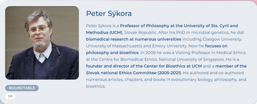 Náš kolega, Prof. RNDr. Peter Sýkora, PhD. z Katedry filozofie a aplikovanej filozofie FF UCM v Trnave sa dňa 5. 3. 2022 zúčastnil okrúhleho stola o genetickom inžinierstve na The Annual Central European Conference v Londýne: