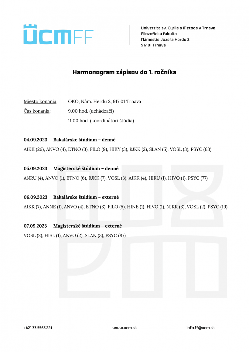 Harmonogram zápisov sa týka prijatých uchádzačov, ktorí sa zatiaľ nezúčastnili zápisov.