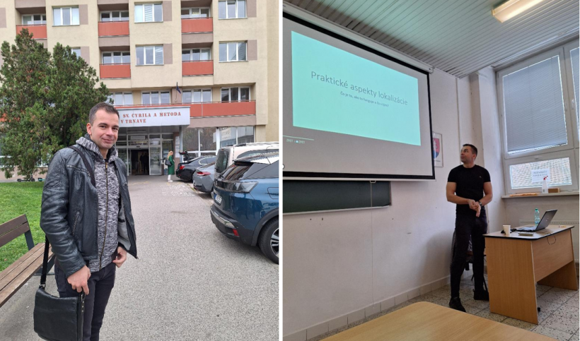 Prednáška pod názvom Praktické aspekty lokalizácie bola zameraná na lokalizáciu ako preklad softvérových produktov (neherný softvér, webové stránky a videohry). Po teoretickom úvode a samotnom predstavení lokalizácie sa zamerala na špecifické prekladateľské problémy, s ktorými sa lokalizátori pri práci pravidelne stretávajú. Záver tvorila praxeologická vsuvka o uplatniteľnosti absolventov v tejto oblasti. Doc. Kabát sa v rámci svojich prekladateľských skúseností už dlhšie špecializuje na lokalizáciu v preklade a stal sa popredným predstaviteľom tejto disciplíny. Venuje sa jej aj ako pedagóg a vyučuje ju na UK. O jeho prednášku na UCM bol veľký záujem. V obecenstve boli desiatky poslucháčov z bakalárskeho aj magisterského stupňa štúdia a pedagógovia dr. Široká, dr. Hudcovičová, dr. Horváth a doc. Böhmerová. Jeho prednáška na túto novú a aktuálnu tému bola veľmi zaujímavá, dynamická, zábavná, ale zároveň tiež podnetná, pričom jej autor poukázal aj na možnosti uplatnenia poslucháčov v tejto oblasti. Po teoretickej, odbornej aj praktickej stránke bola výrazným prínosom pre Katedru anglistiky a amerikanistiky, špecificky pre jej študijný program Anglický jazyk a kultúra v odbornej komunikácii.