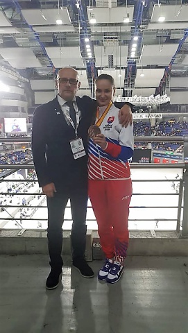 Tento víkend priniesla naša skvelá študentka psychológie Bc. Miroslava Kopúňová bronzovú medailu z Majstrovstiev sveta v karate v španielskom Madride. Tento rok sa majstrovstiev zúčastnil rekordný počet reprezentantov - 1251 pretekárov zo 140 krajín celého sveta a naša Mirka skončila na fantastickom treťom mieste! Gratulujeme!